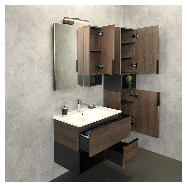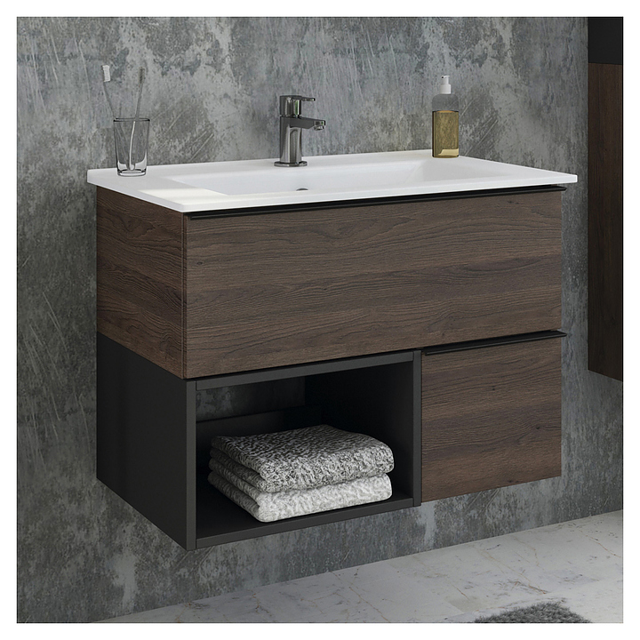 Тумба с раковиной Comforty Франкфурт-75 дуб шоколадный, белая раковина