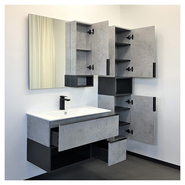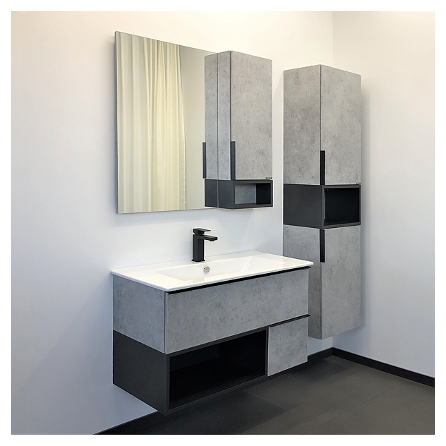 Тумба с раковиной Comforty Франкфурт-90 бетон светлый, белая раковина