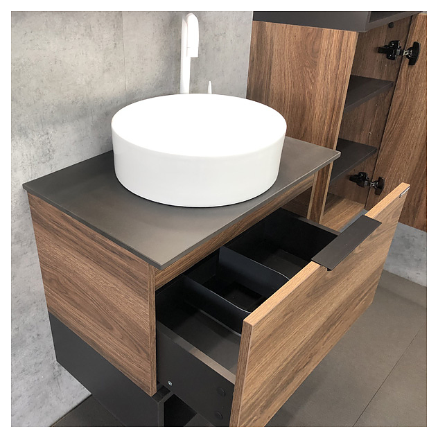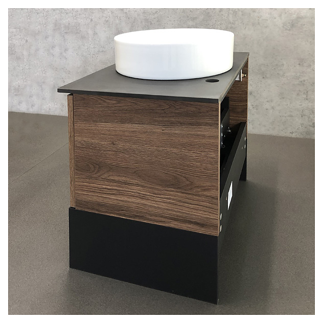 • Цвет корпуса и фасада ящиков: темно-коричневый дуб