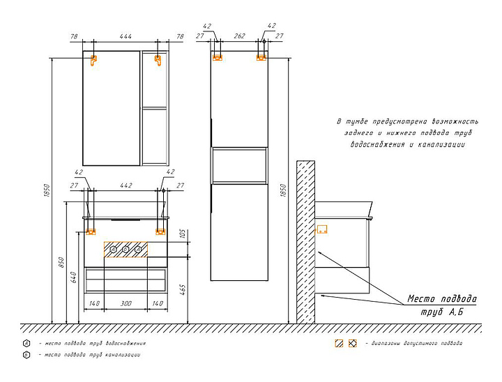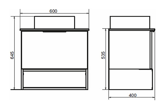 • Высота тумбы со столешницей: 535 мм