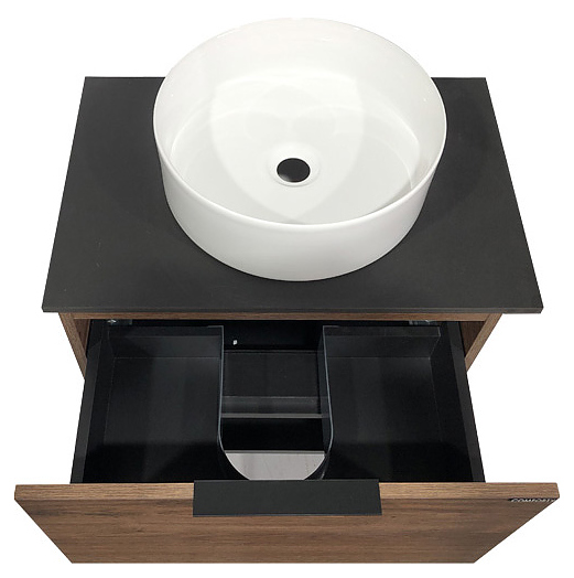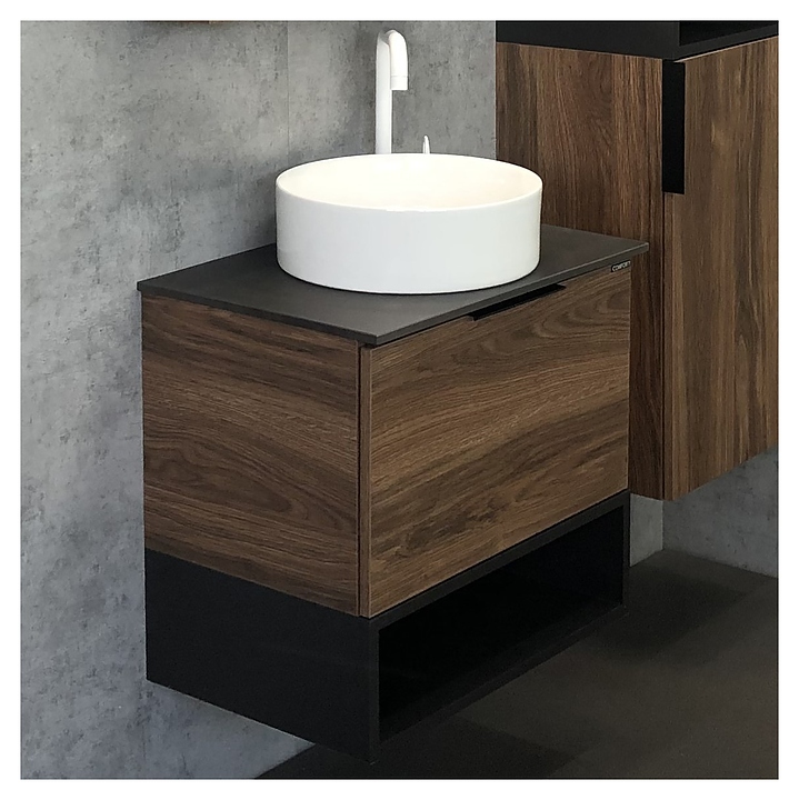 Тумба с раковиной Comforty Штутгарт-60 дополнит интерьер ванной комнаты. Благодаря подвесной конструкции модель не занимает много места, что экономит пространство и облегчает уборку. Тумба оснащена выдвижным ящиком плавного закрывания, открытой полкой в нижней части и ручкой. Раковина имеет широкую заднюю поверхность для размещения аксессуаров, слив-перелив и отверстие для смесителя, расположенное по центру. Изделие выполнено из влагостойкой ЛДСП, столешница - из керамогранита, ручка - из алюминия, раковина - из санфарфора, который обладает повышенной прочностью и устойчивостью к негативным внешним факторам, не впитывает запахи и грязь.