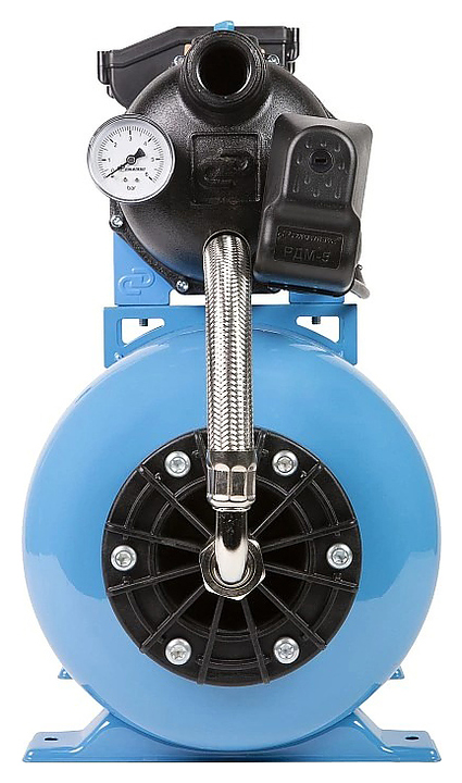 Насосная станция Джилекс Джамбо 60/35 Ч-24 предназначен для подачи чистой воды из колодцев, открытых водоемов и магистральных трубопроводов. Модель оснащена гидроаккумулятором, манометром, заливным отверстием с резьбовой пробкой для быстрого заполнения водой насосной части и всей всасывающей магистрали перед первым пуском и вентилятором охлаждения в задней части электродвигателя. Корпус и гидравлическая часть выполнены из чугуна, рабочие колеса - из износостойкого пластика. В комплект поставки входят насос, соединительная арматура и электрокабель с вилкой. Насосную станцию нельзя устанавливать в местах, где возможно затопление, заужать внутренний диаметр всасывающей магистрали и включать без воды. Особенности: