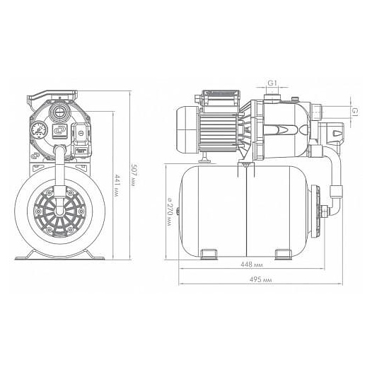 Насосная станция Джилекс Джамбо 70/50 П-24 предназначен для подачи чистой воды из колодцев, открытых водоемов и магистральных трубопроводов. Модель оснащена гидроаккумулятором, манометром, заливным отверстием с резьбовой пробкой для быстрого заполнения водой насосной части и всей всасывающей магистрали перед первым пуском и вентилятором охлаждения в задней части электродвигателя. Корпус и рабочие колеса выполнены из высокопрочного инженерного пластика. В комплект поставки входят насос, соединительная арматура и электрокабель с вилкой. Насосную станцию нельзя устанавливать в местах, где возможно затопление, заужать внутренний диаметр всасывающей магистрали и включать без воды. Особенности: