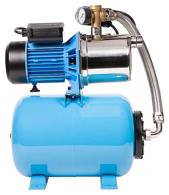 Насосная станция Джилекс Джамбо 70/50 Н-24 предназначен для подачи чистой воды из колодцев, открытых водоемов и магистральных трубопроводов. Модель оснащена гидроаккумулятором, манометром, заливным отверстием с резьбовой пробкой для быстрого заполнения водой насосной части и всей всасывающей магистрали перед первым пуском и вентилятором охлаждения в задней части электродвигателя. Корпус и гидравлическая часть выполнены из нержавеющей стали, рабочие колеса - из износостойкого пластика. В комплект поставки входят насос, соединительная арматура и электрокабель с вилкой. Насосную станцию нельзя устанавливать в местах, где возможно затопление, заужать внутренний диаметр всасывающей магистрали и включать без воды. Особенности: