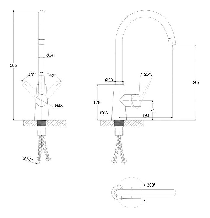 Смеситель Paulmark Holstein Ho212065-401 предназначен для подачи горячей и холодной воды в кухонных помещениях. Модель оснащена аэратором, который уменьшает шум и снижает количество брызг. Керамический картридж обеспечивает плавный ход рычага смесителя, контроль и точность при выборе напора и температуры воды. Изделие выполнено из латуни, отличающейся прочностью, долговечностью и устойчивостью к перепадам температур. В комплект поставки входят крепления, аэратор и гибкая подводка. Дополнительные характеристики: