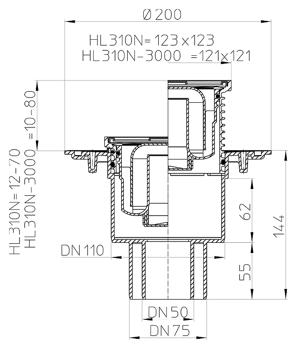 Трап регулируемый HL 310N предназначен для приема и отведения в канализационную сеть сточных вод с поверхности пола внутренних жилых, общественных и производственных помещений. Трап оснащен обжимным фланцем, решеткой, снимаемым насадным подрамником, запахозапирающим устройством. Корпус трапа, надставной элемент, подрамник и сетка изготовлены из полипропилена, решетка - из нержавеющей стали. В комплект поставки входит: трап полипропиленовый с решёткой из нержавеющей стали, монтажные заглушки. Дополнительные характеристики: