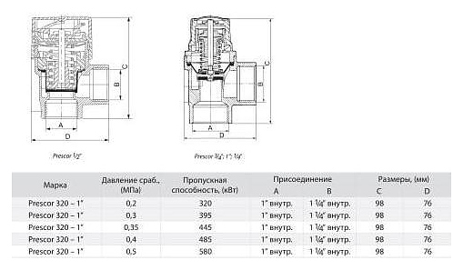 Клапан предохранительный пружинный угловой Flamco Prescor Rp1"хG1 1/4" 29005 6 бар