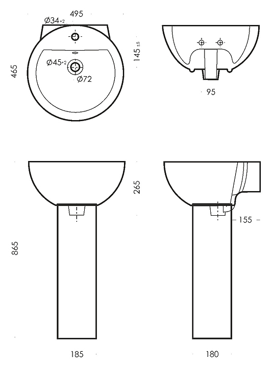 Раковина пьедестальная SANITA LUXE Art 400001 47 49,5х26,5 см, белая
