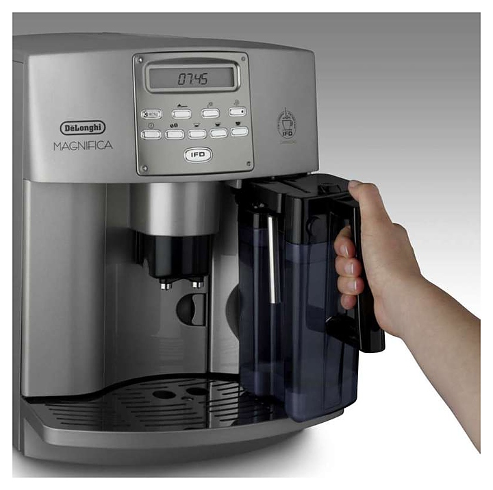 Автоматическая кофемашина Delonghi ЕSАМ 3500.S позволяет готовить эспрессо, капучино, латте, макиато, горячее молоко или кофе лунго с помощью нажатия одной кнопки. Машина оснащена запатентованной системой автокапучино - взбитое молоко подается прямиком в чашку при выборе соответствующей функции. Аппарат имеет 2 термоблока, один из которых отвечает за нагрев бойлера, а второй - за образование пара. Особенности: