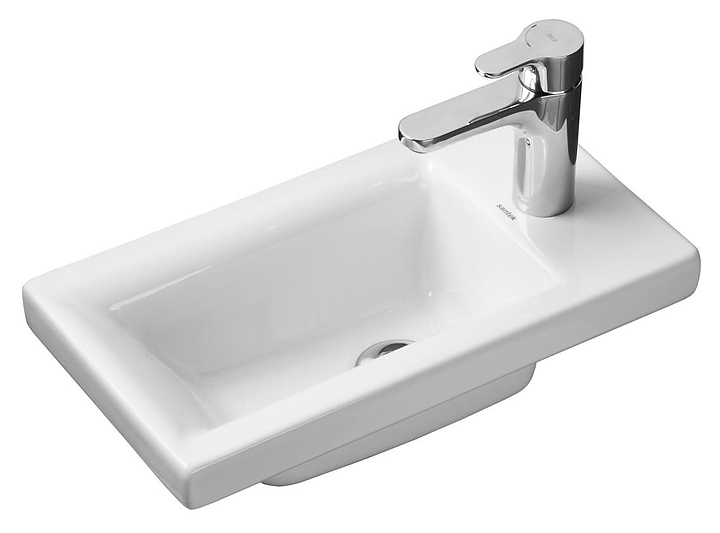 Раковина Santek Миранда 40 1WH302500 выполнена в современном стиле. Встраиваемая конструкция позволяет экономить место в ванной комнате для хранения туалетных принадлежностей. Модель оснащена широкой задней поверхностью, на которой можно размещать необходимые аксессуары для ежедневного использования, а глубокая удобная чаша препятствует разбрызгиванию воды. Изделие выполнено из санфарфора, который обладает повышенной прочностью и устойчивостью к негативным внешним факторам, а так же долгое время сохраняет идеальную белизну и не впитывает запахи и грязь. В комплект поставки входит хромированное кольцо. Смеситель в комплект поставки не входит и приобретается отдельно. Особенности: