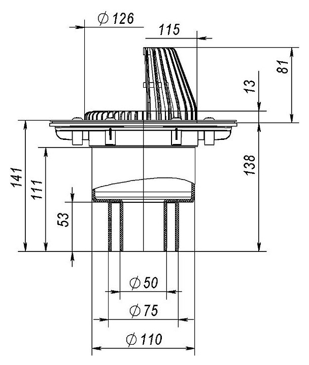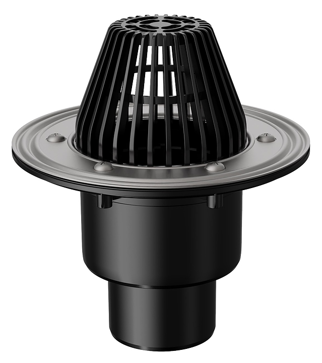 Воронка кровельная Fachmann VB 310.1 Y с вертикальным выпуском PP Дн 50/75/110 с листвоуловителем, обжимным фланцем