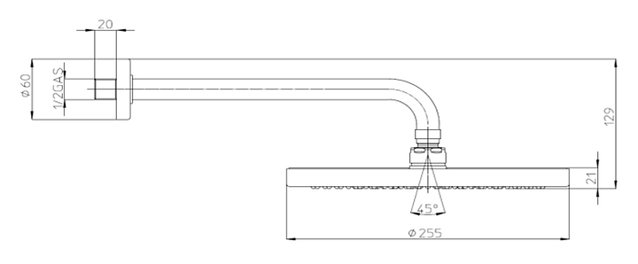Душ верхний с настенным кронштейном Bossini Elios H19412G.073