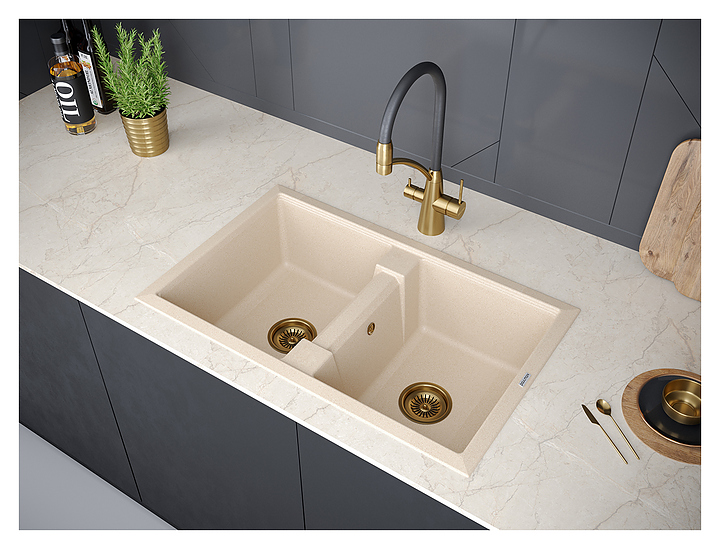 Мойка Paulmark Zwilling PM238150-QU предназначена для рационального планирования рабочего места на кухне. Вместительные чаши расположены параллельно друг другу. Модель имеет готовое отверстие для смесителя и оснащена двойным телескопическим сифоном с круглым переливом TRUST PM1023-CR, благодаря уникальной конструкции которого под кухонной мойкой освобождается пространство для бытовых принадлежностей, а также предусмотрена возможность подключения стиральных и посудомоечных машин.. Изделие выполнено из кварцевого композита, который отличается высокой прочностью, устойчивостью к царапинам, долговечностью, безопасностью и экологичностью, а также имеет гладкую поверхность без пор, гарантирующую гигиеничность. В комплект поставки входят крепления, сливная арматура, сифон, сливы-переливы и корзинчатый вентиль. Дополнительные характеристики: