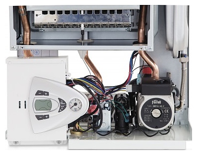 Газовый конвекционный котел Ferroli Vitabel F18 предназначен для совместного использования в системах отопления и водоснабжения в жилых и загородных частных домах, а также других бытовых и хозяйственных объектах. Модель оснащена горелкой с 12 форсунками, расширительным баком, фирменным 3-скоростным циркуляционным насосом Ferroli, 2 раздельными теплообменниками, 3-ходовым клапаном с электроприводом, резьбовыми штуцерами для подключения газа, отопительного контура, подвода холодной и выхода горячей воды, дымовыводящим отверстием, кабелем питания типа HAR H05 VV-F и электронной панелью управления с жидкокристаллическим дисплеем. Вертикально ориентированный корпус с прямоугольными гранями выполнен из стали с антикоррозийным покрытием белого цвета, основной теплообменник – из меди, теплообменник ГВС – из нержавеющей стали, гидравлическая группа – из высокопрочных композитных материалов.