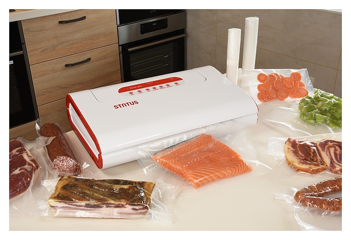 Вакуумный упаковщик Status Solid 300 используется на предприятиях пищевой промышленности, общественного питания и торговли, а также в частных домах и квартирах для упаковки в вакуум полуфабрикатов и готовых блюд в пакетах или контейнерах для увеличения срока хранения. Модель оснащена цифровым дисплеем, двухпоршневым насосом и встроенным резаком для пленки. Внешний корпус выполнен из ABS-пластика. В комплект поставки входят переходник для контейнеров, 3 пакета 20x28 см, 3 пакета 28x36 см, рулон пленки 20x300 см и рулон пленки 28x150 см и 20x150 см, 5 двусторонних клейких лент Status Stiki и приспособление для вакуумирования контейнеров. Особенности: