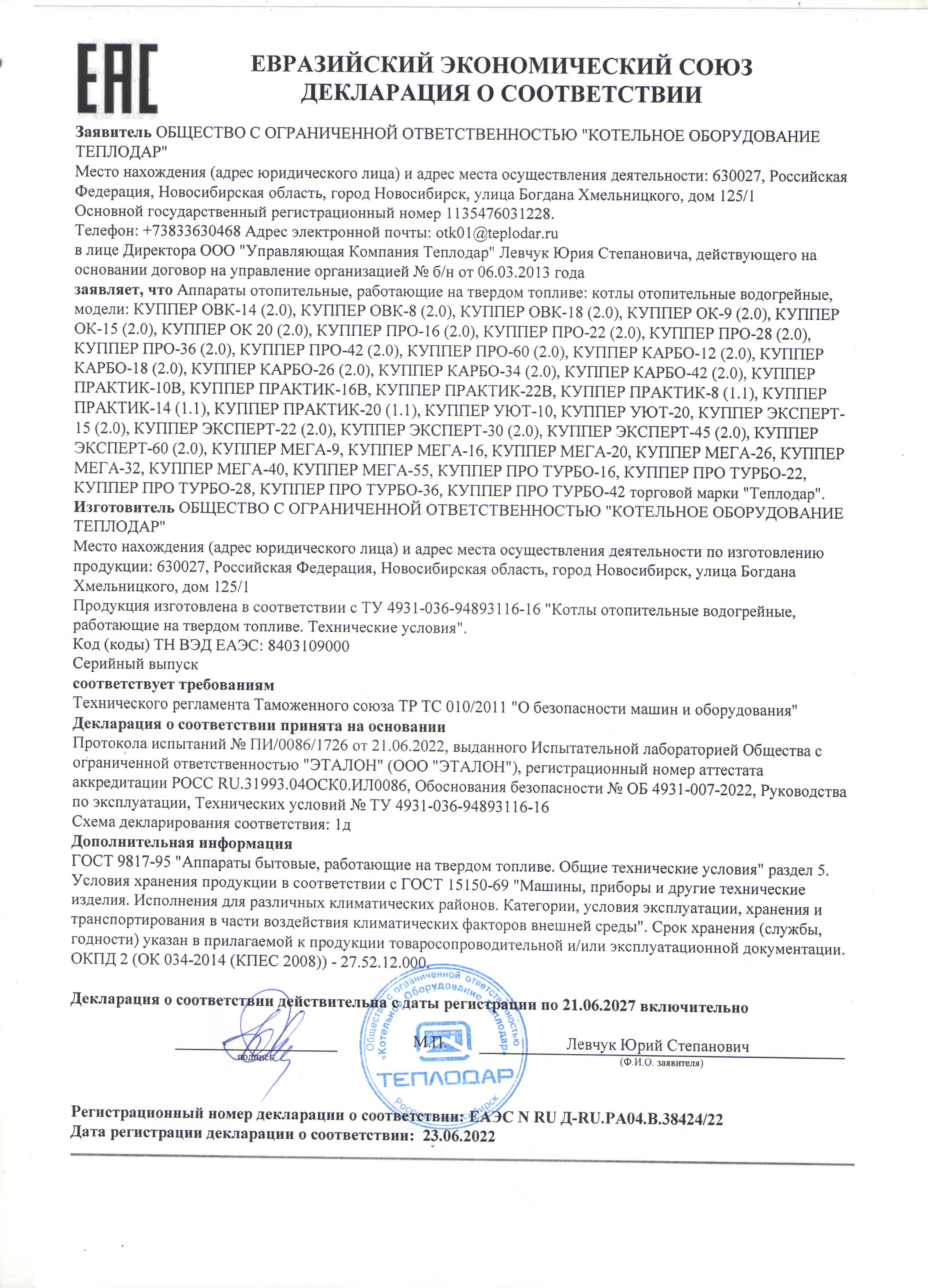 Котел отопительный Теплодар Куппер ОК-20 (2.0)