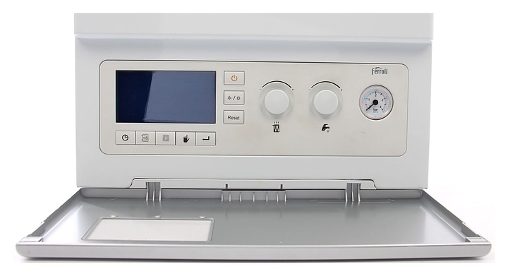 Электрический котел Ferroli LEB 21.0 предназначен для использования в системах отопления в жилых и загородных частных домах, а также других бытовых и хозяйственных объектах. Модель оснащена расширительным баком, 3-скоростным циркуляционным насосом Wilo (Франция), цилиндрическим теплообменником с 4 блоками погружных трубчатых электронагревателей (ТЭНов), резьбовыми штуцерами для подключения отопительного контура и внешнего бойлера горячего водоснабжения, кабельным вводом, электромеханической панелью управления защитной откидной крышкой и информативным жидкокристаллическим дисплеем с голубой подсветкой. Вертикально ориентированный корпус с прямоугольными гранями выполнен из стали с антикоррозийным покрытием белого цвета, защитная крышка – из пластика серебристого цвета, ТЭНы – из меди.