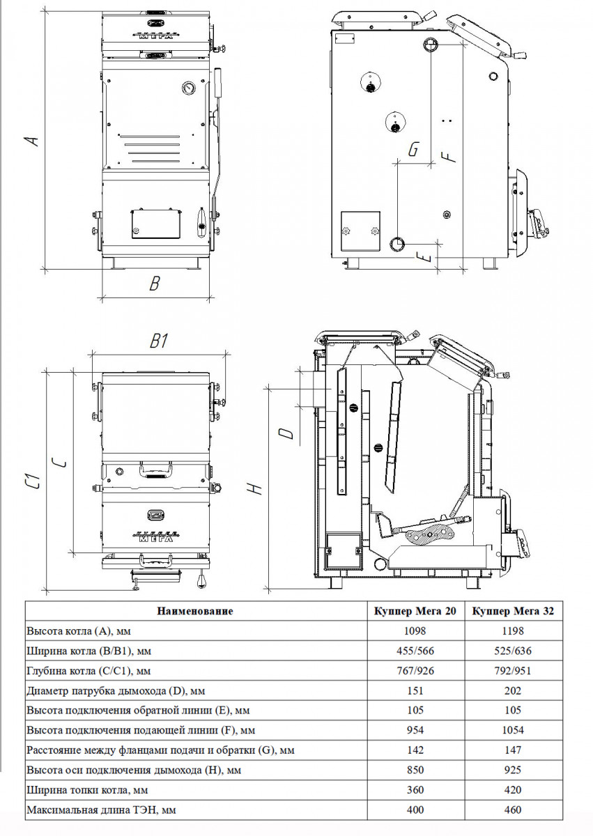 • Рекомендуемое топливо: дрова, уголь, древесные, торфяные и угольные брикеты
