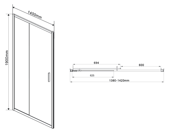 Дверь душевая Vincea Garda VDS-1G140CLB 140х190 см с прозрачным стеклом, раздвижная, черный