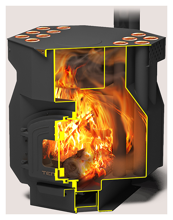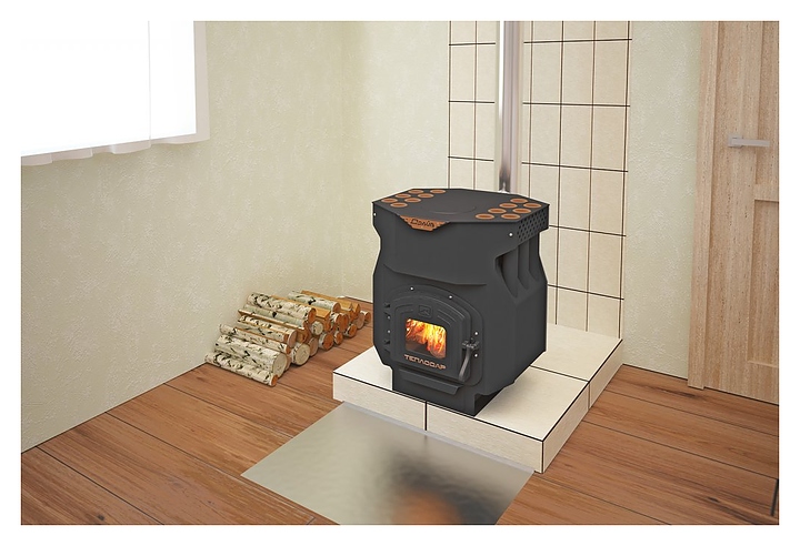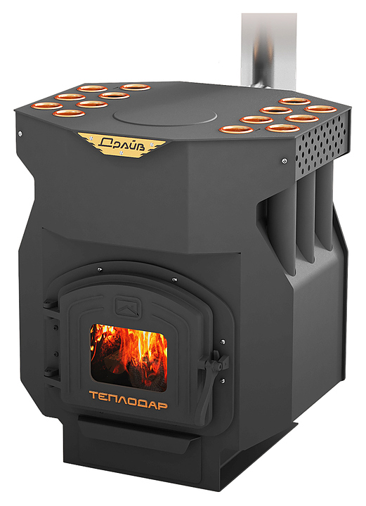Отопительная печь Теплодар Топ-Драйв-150 предназначена для обогрева помещений, а также приготовления пищи в частных домах, коттеджах и на дачах. Модель оснащена варочной поверхностью и дверцей с механизмом запирания. Корпус выполнен из качественной конструкционной стали, все наружные поверхности окрашены двумя слоями жаростойкой кремний-органической эмали, дверца - из чугуна с жаропрочным стеклом, колосник - из чугуна. В комплект поставки входит поворотный шибер из нержавеющей стали. Особенности:
