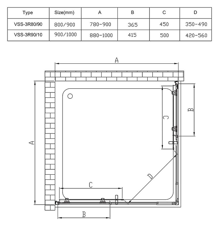Уголок душевой Vincea Rapid VSS-3R80/90CL 80/90х80/90 см, прозрачное стекло, хром