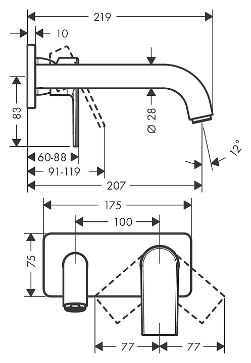 Смеситель для раковины встраиваемый Hansgrohe Vernis Shape 71578000