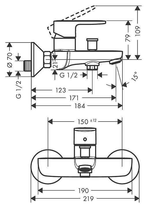Смеситель для ванны и душа Hansgrohe Vernis Blend 71440000