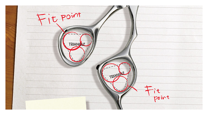 • Разноуровневые рукоятки с анатомическим изгибом, треугольная геометрия отверстия и сечения профиля колец для стабильного захвата без излишнего напряжения мышц и суставов