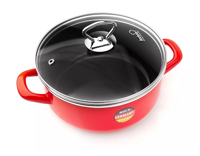 Кастрюля Kochctar Primus lava red 50524820 3,7 л используется на предприятиях общественного питания и торговли, в частных домах и квартирах для приготовления широкого спектра блюд на плитах с любым типом нагрева. Внутренний слой выполнен из стали бесшовным способом, что обеспечивает конструкции дополнительную защиту от деформации, ручки - из нержавеющей стали, крышка - из жаропрочного стекла с отделкой из нержавеющей стали. Внешняя сторона покрывается особой эмалью Keramico. В комплект поставки входит крышка. Особенности: