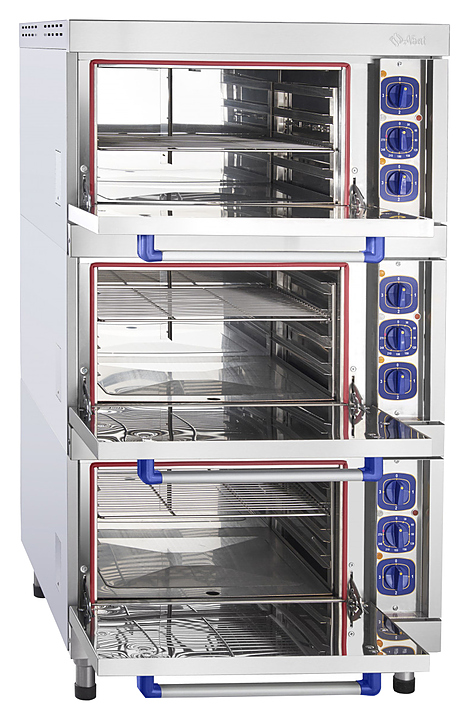 Жарочный шкаф Abat ШЖЭ-3-01 предназначен для приготовления различных блюд и выпечки хлебобулочных изделий на предприятиях общественного питания и торговли. Модель оснащена регулируемыми по высоте ножками. Камера, лицевая панель и дверцы выполнены из нержавеющей стали AISI 304, подставка, боковые и задние стенки - из окрашенного металла. В комплект поставки входят 6 противней размером 530х470х33 мм и 3 решетки размером 530х470 мм. Особенности: