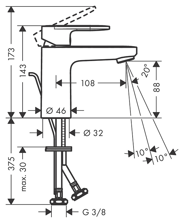 Смеситель для раковины Hansgrohe Vernis Blend 71551000 со сливным гарнитуром