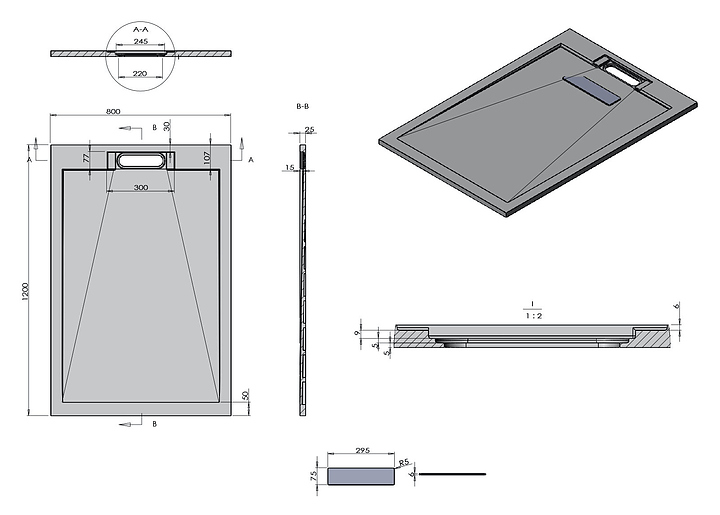 Поддон душевой Vincea VST-4SRL8012A 120х80 см, искусственный камень, антрацит