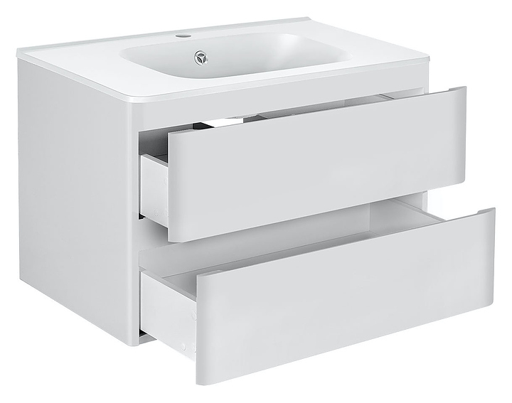 Тумба под раковину Vincea Vico 800 G.White выполнена в современном стиле и идеально впишется в интерьер любой ванной комнаты. Благодаря подвесной конструкции изделие не занимает много места, позволяет экономить пространство и облегчает уборку. Модель оснащена 2 выкатными ящиками с системой мягкого закрывания. Особенности: