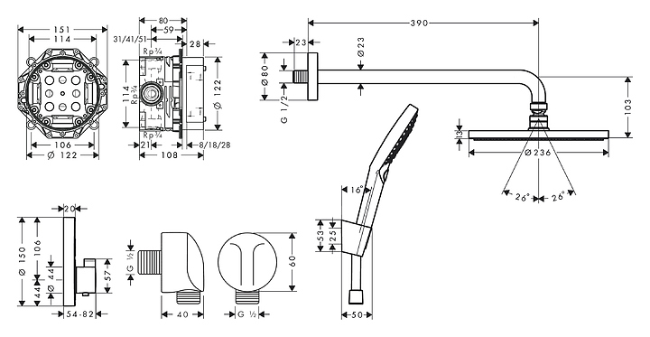 Комплект душевой встраиваемый термостат Hansgrohe Raindance S 27959670
