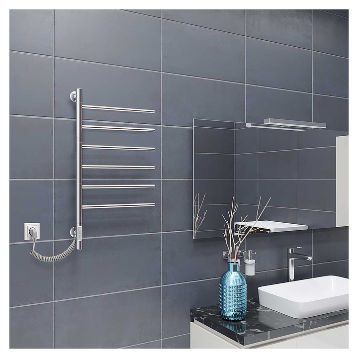Электрический полотенцесушитель Vincea VTD-1S2CE предназначен для подогрева и сушки полотенец, а также для обогрева ванных комнат в квартирах, коттеджах, частных домах. Модель оснащена таймером, отключающим устройство после сушки, а также 6 секциями для размещения полотенец. Изделие выполнено из нержавеющей стали. В комплект поставки входят световой индикатор, отражатели, крепления и электрический кабель. Особенности: