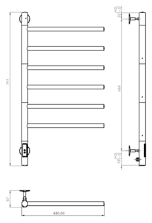 Полотенцесушитель электрический Vincea VTD-1S2CE 43х80 см, с таймером, хром