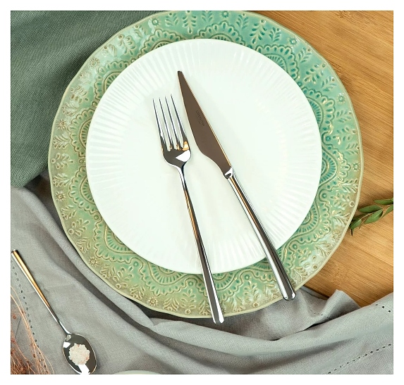 Набор столовых приборов CRISTEMA PEP-16200-75L серии Macau используется на предприятиях общественного питания и торговли, а также в частных домах и квартирах для сервировки. Столовые вилки и ложки изготовлены из нержавеющей стали 18/10 марки AISI 304 с зеркальной полировкой, ножи - из закаленной нержавеющей стали 13/0 с содержанием 13% хрома. В комплект поставки входят 12 столовых ножей, 12 столовых вилок, 12 столовых и 12 чайных ложек, 12 десертных вилок, 12 кофейных ложек, половник, сервировочная ложка и лопатка. Особенности: