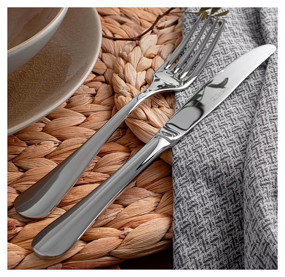 Набор столовых приборов CRISTEMA PEP-7200-24L серии Volga используется на предприятиях общественного питания и торговли, а также в частных домах и квартирах для сервировки. Столовые вилки и ложки изготовлены из нержавеющей стали 18/10 марки AISI 304 с зеркальной полировкой, ножи - из закаленной нержавеющей стали 13/0 с содержанием 13% хрома. В комплект поставки входят 6 столовых ножей, 6 столовых вилок, 6 столовых и 6 чайных ложек. Особенности:
