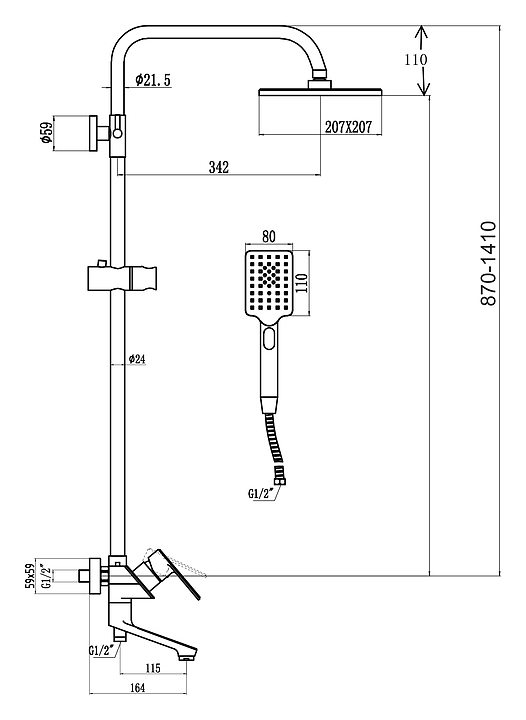 Душевая стойка Savol S-600708-1 предназначена для подачи горячей и холодной воды в ванных помещениях. Модель оснащена квадратным верхним и прямоугольным ручным душами. Керамический картридж обеспечивает плавный ход рычага смесителя, контроль и точность при выборе напора и температуры воды. Душевая стойка монтируется на стену с помощью шурупов. Изделие выполнено из латуни, отличающейся прочностью и долговечностью, шланг - в металлической оплетке. Особенности: