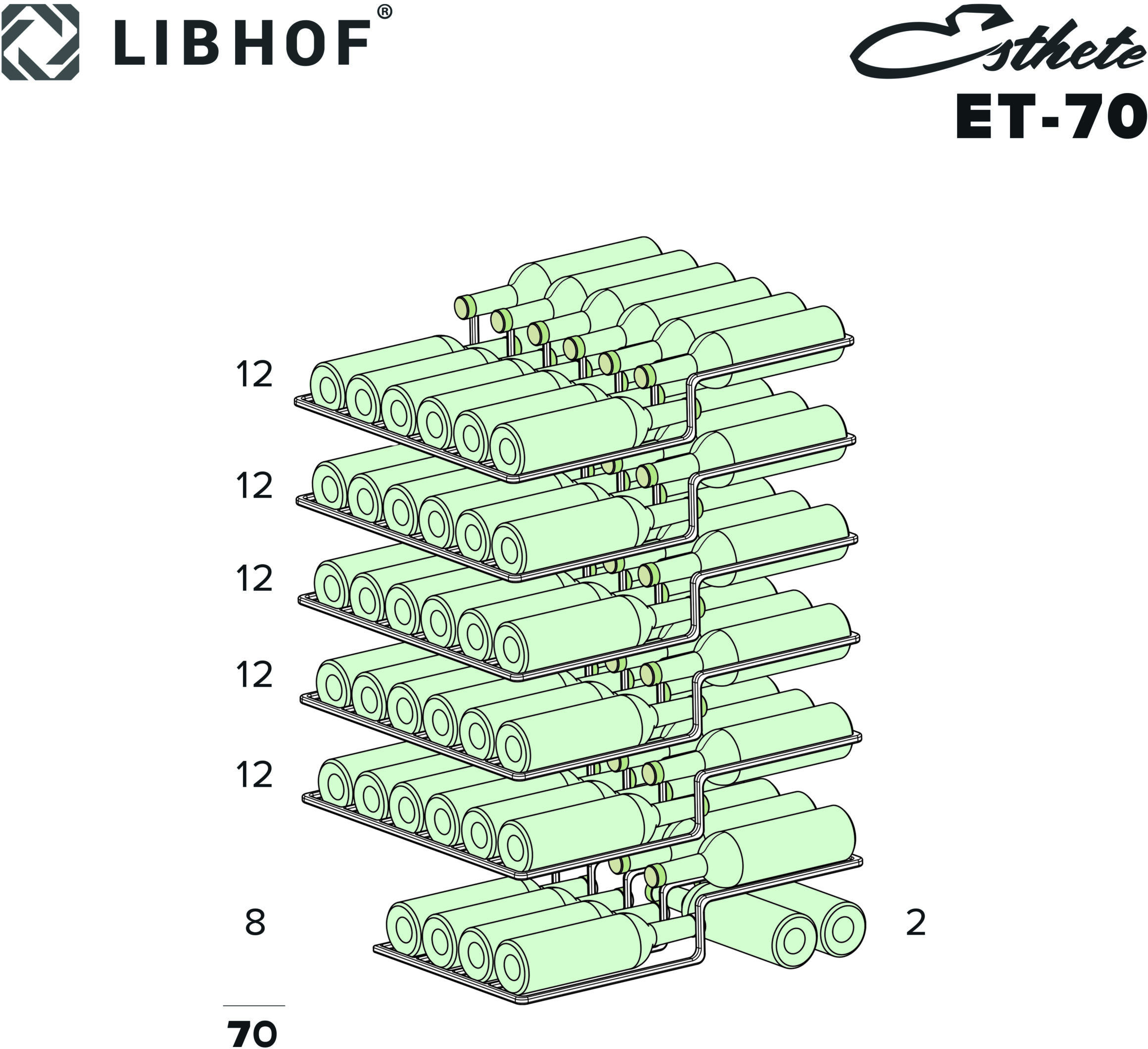 Винный шкаф Libhof Esthete ET-70 Black предназначен для хранения при оптимальных условиях бутилированного вина различных сортов в барах, ресторанах, специализированных магазинах, подсобных складских помещениях, а также домашних условиях. Модель оснащена монотемпературной холодильной камерой, съемной цокольной вентиляционной решеткой, запираемой на ключ распашной дверью на внешних петлях, скрытой интегрированной рукояткой, прозрачным дымчатым обзорным остеклением, внешней сенсорной панелью управления и цифровым дисплеем. Корпус и полки выполнены из металла с антикоррозийным покрытием черного цвета. В комплект поставки входят 6 полок с направляющими для размещения бутылок, ключ от дверного замка и инструкция по эксплуатации. Особенности: