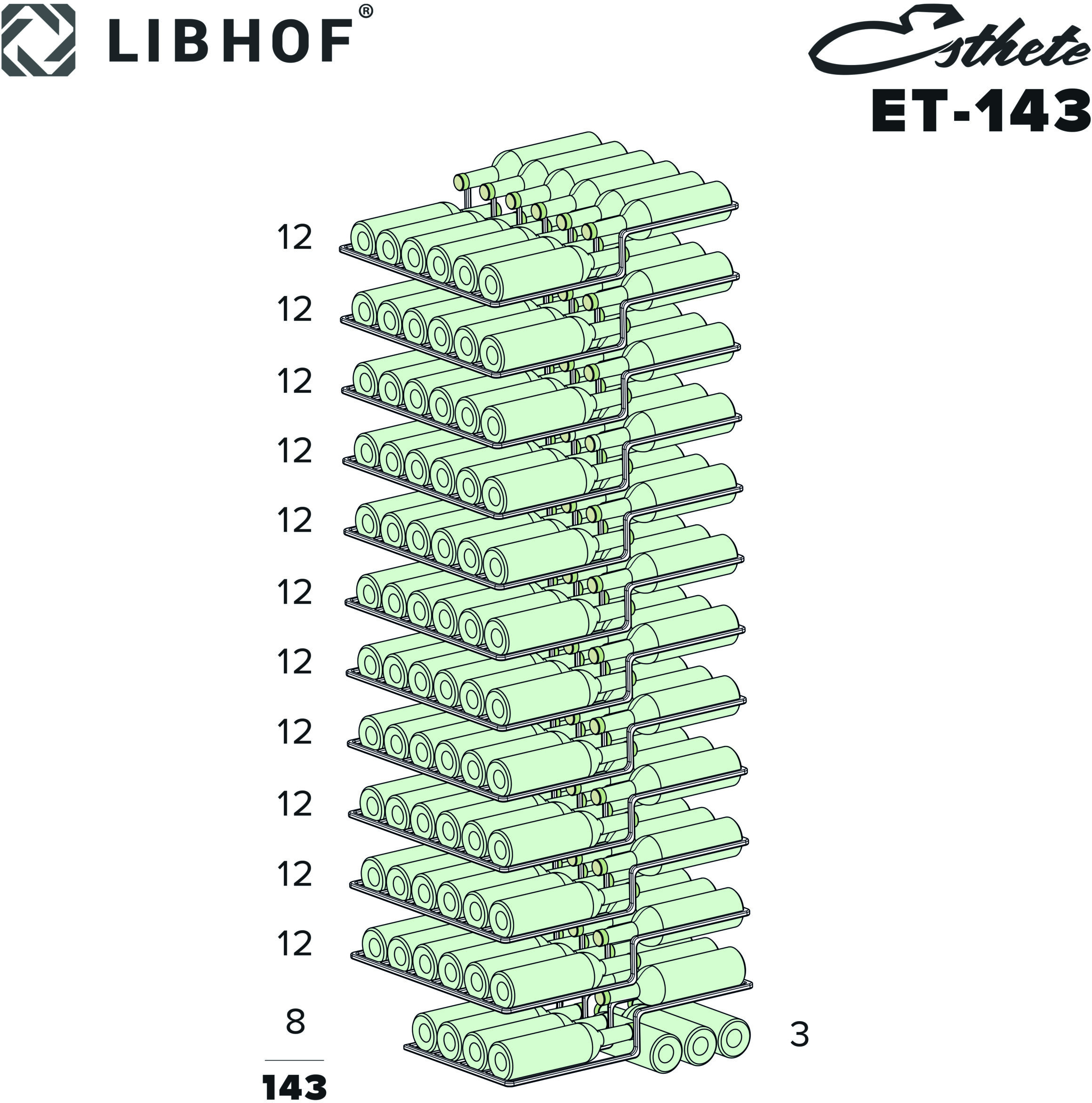 Винный шкаф Libhof Esthete ET-143 Black предназначен для хранения при оптимальных условиях бутилированного вина различных сортов в барах, ресторанах, специализированных магазинах, подсобных складских помещениях, а также домашних условиях. Модель оснащена монотемпературной холодильной камерой, съемной цокольной вентиляционной решеткой, запираемой на ключ распашной дверью на внешних петлях, скрытой интегрированной рукояткой, прозрачным дымчатым обзорным остеклением, внешней сенсорной панелью управления и цифровым дисплеем. Корпус и полки выполнены из металла с антикоррозийным покрытием черного цвета. В комплект поставки входят 6 полок с направляющими для размещения бутылок, ключ от дверного замка и инструкция по эксплуатации. Особенности: