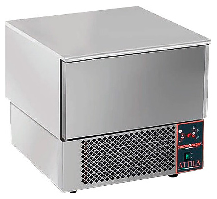 Шкаф шоковой заморозки Tecnodom ATT03 серии Attila предназначен для быстрого охлаждения и заморозки большого объема продукции с сохранением ее первоначальных свойств на на предприятиях общественного питания и торговли. Модель оснащена рабочей камерой с универсальными направляющими для гастроемкостей, распашной дверью, подставкой с встроенным холодильным агрегатом, электронным блоком управления с кнопочной панелью и цифровым дисплеем. Внутренняя и внешняя облицовка камеры, опоры и направляющие выполнены из высококачественной нержавеющей стали, внешняя облицовка основания – из оцинкованной стали, термоизоляция камеры – из залитого под высоким давлением пенополиуретана без содержания опасных хлорфторуглеродов (CFC). В комплект поставки входят термощуп, съемный поддон для сбора конденсата, кабель питания и инструкция по эксплуатации. Особенности: