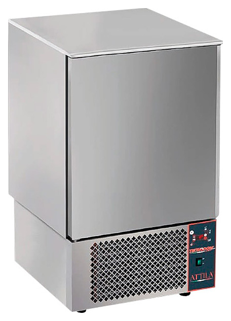 Шкаф шоковой заморозки Tecnodom ATT10-P серии Attila предназначен для быстрого охлаждения и заморозки большого объема продукции с сохранением ее первоначальных свойств на на предприятиях общественного питания и торговли. Модель оснащена рабочей камерой с универсальными направляющими для гастроемкостей, распашной дверью, подставкой с встроенным холодильным агрегатом, электронным блоком управления с кнопочной панелью и цифровым дисплеем. Внутренняя и внешняя облицовка камеры, опоры и направляющие выполнены из высококачественной нержавеющей стали, внешняя облицовка основания – из оцинкованной стали, термоизоляция камеры – из залитого под высоким давлением пенополиуретана без содержания опасных хлорфторуглеродов (CFC). В комплект поставки входят термощуп, съемный поддон для сбора конденсата, кабель питания и инструкция по эксплуатации. Особенности: