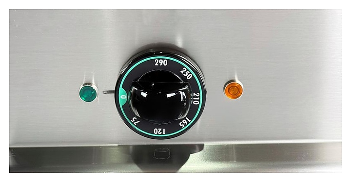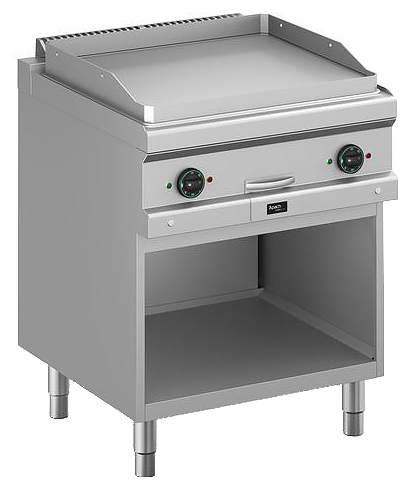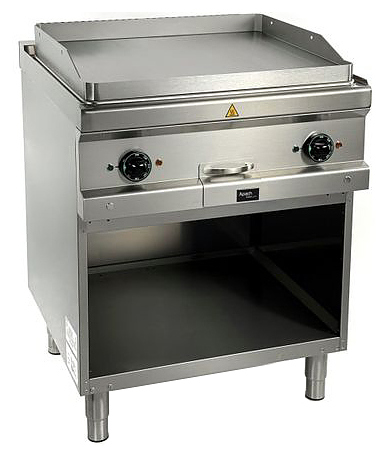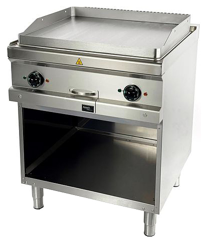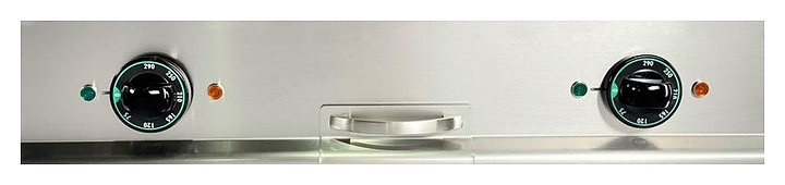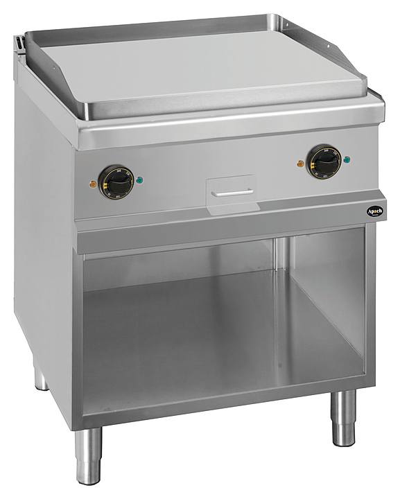 Жарочная поверхность Apach APTE-77PL/PL 700-й серии предназначена для обжарки мяса, рыбы и овощей на предприятиях общественного питания и торговли. Модель с закругленными краями и бортами оснащена электромеханической панелью управления с 2 терморегуляторами и 4 световыми индикаторами, выдвижным лотком для сбора остатков пищи, масла и жира и открытой подставкой с регулируемыми по высоте ножками. Корпус, панель управления и вытяжная решетка выполнены из нержавеющей стали AISI 304, боковые и задняя панели - из нержавеющей стали AISI 430, лоток - из нержавеющей стали, рабочая поверхность – из конструкционной стали. Дополнительные характеристики: