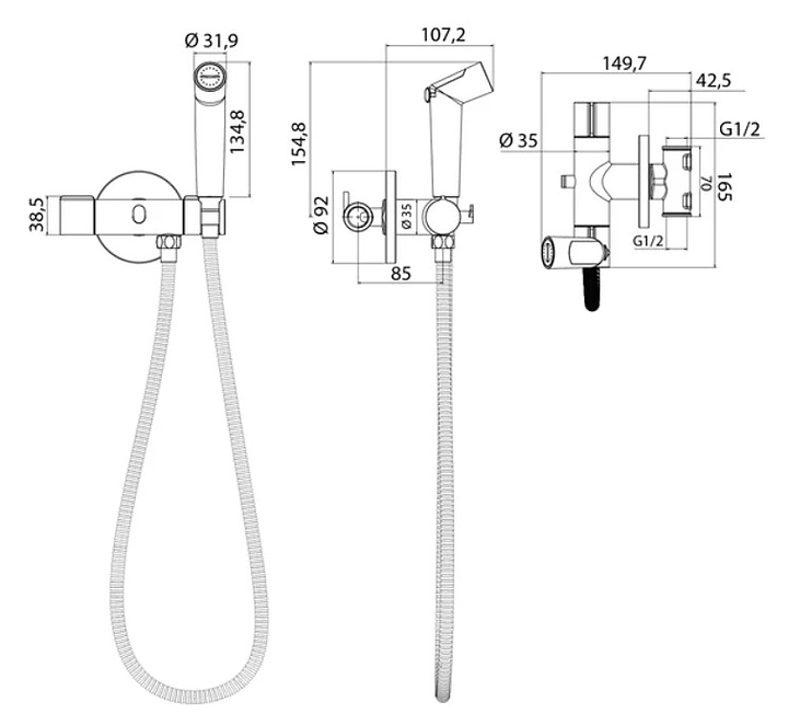 Комплект IDDIS Axes AXESBR0i08 предназначен для использования в туалетных комнатах. Подача воды включается держателем лейки: при повороте держателя на себя она открывается, обратно - закрывается. Изделие выполнено из высококачественной латуни, которая отличается прочностью, долговечностью и устойчивостью к перепадам температур. Особенности: