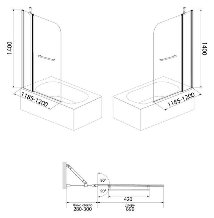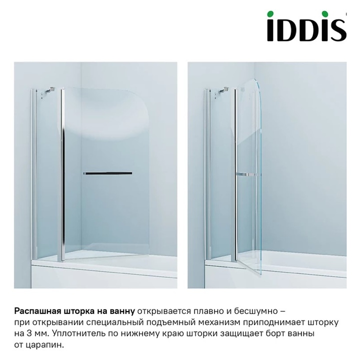 Шторка на ванну IDDIS Ray RAY6CS2i90 120х140 см, прозрачное, распашная, хром