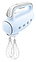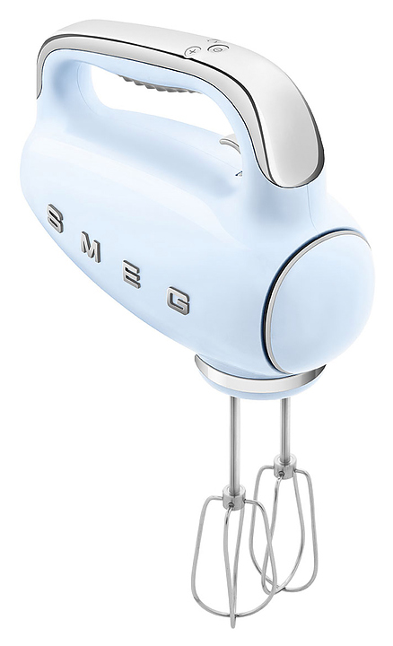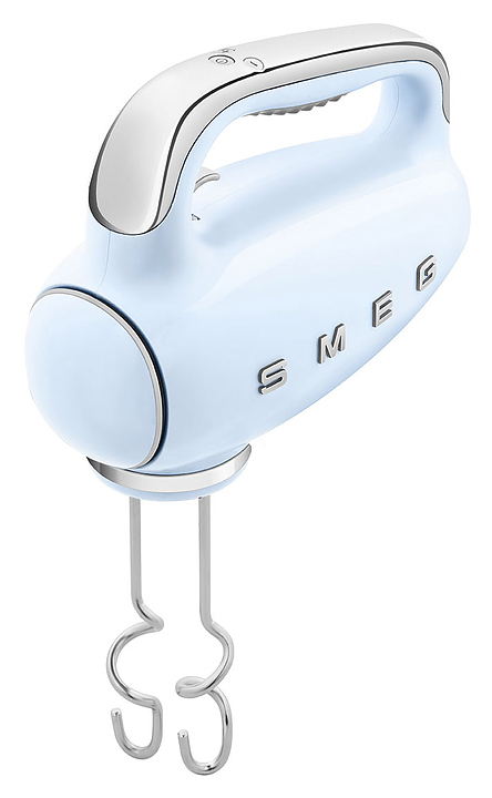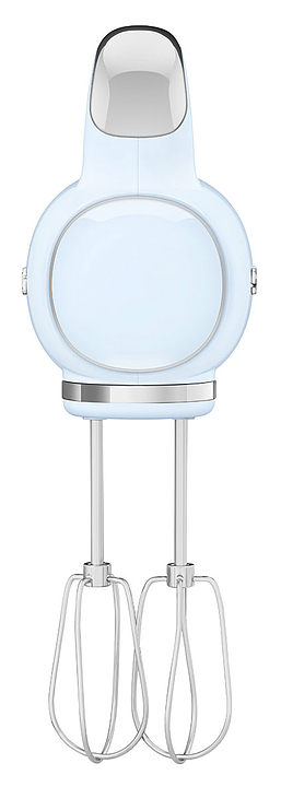 Миксер Smeg HMF01PBEU предназначен для взбивания кремов, муссов, замешивания теста, а также для приготовления пюре, соусов и коктейлей в частных домах и квартирах. Модель выполнена в стиле 50-х годов. Корпус изготовлен из ABS-пластика с глянцевой отделкой, верхняя часть - из пластика, нижняя часть - из Soft touch пластика. Комплектация: