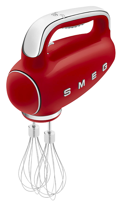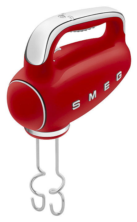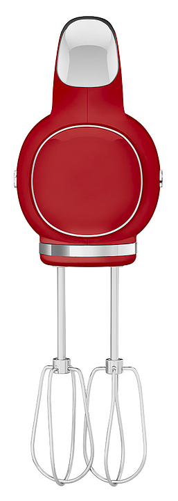 Миксер Smeg HMF01RDEU предназначен для взбивания кремов, муссов, замешивания теста, а также для приготовления пюре, соусов и коктейлей в частных домах и квартирах. Модель выполнена в стиле 50-х годов. Корпус изготовлен из ABS-пластика с глянцевой отделкой, верхняя часть - из пластика, нижняя часть - из Soft touch пластика. Комплектация: