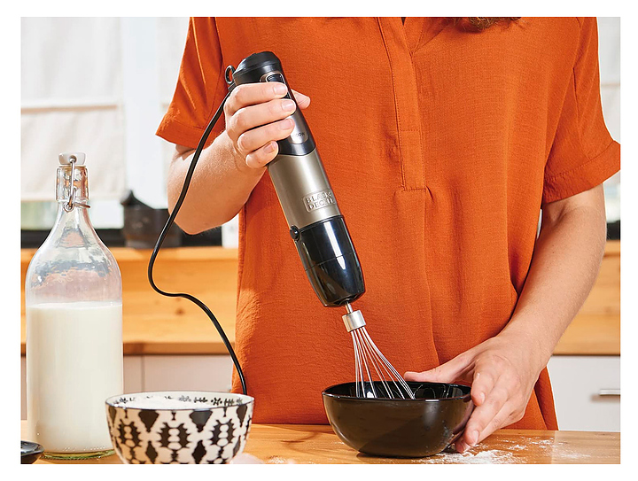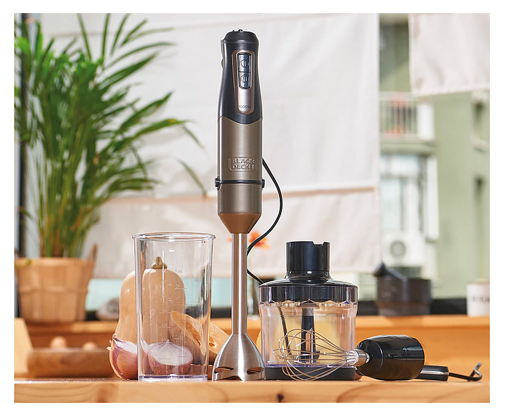Погружной блендер Black+Decker BXHBA1000E предназначен для приготовления овощных пюре, смузи, зеленых коктейлей, муссов и кремов в частных домах и квартирах. Модель оснащена регулятором скорости и ножом с 4 лезвиями. Корпус выполнен из нержавеющей стали с покрытием, защищающим от отпечатков пальцев, ножи - из нержавеющей стали. Комплектация: