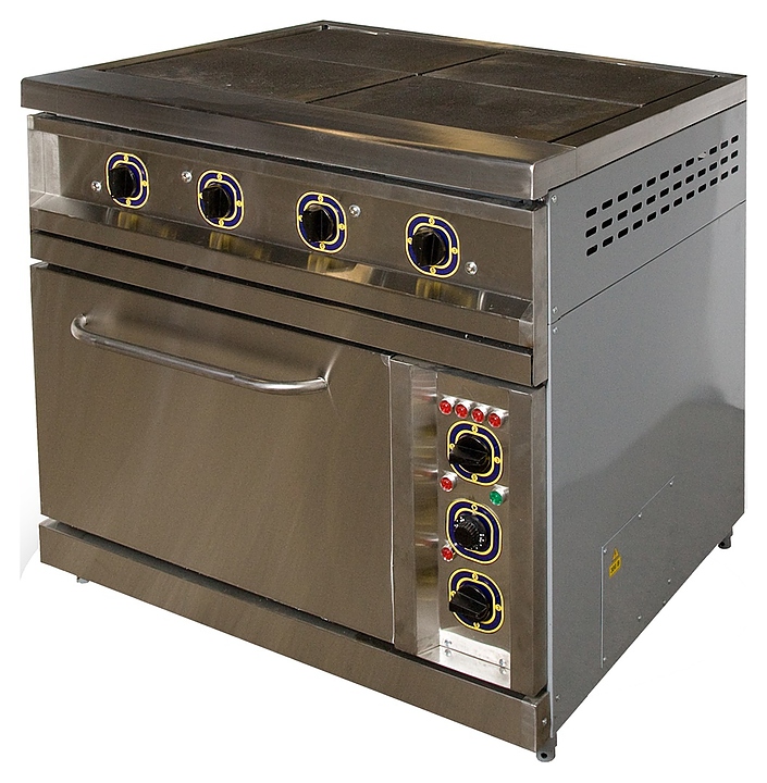 Напольная электрическая плита ONEGA ПЭЖШ-4 Н предназначена для приготовления широкого ассортимента блюд в наплитной посуде в кафе, ресторанах и на других предприятиях общественного питания и торговли. Модель оснащена рабочей поверхностью с 4 варочными зонами, жарочным шкафом с откидной дверью с горизонтальной рукояткой и фронтальными электромеханическими панелями управления. Лицевые элементы корпуса выполнены из нержавеющей стали, задняя стенка – из оцинкованной стали, рабочая поверхность – из чугуна. Особенности: